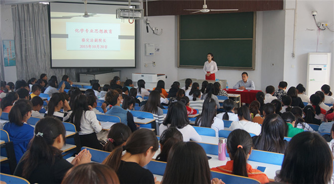 谆谆教诲育莘莘学子,声声叮咛树师者风范。为了提高新生的专业思想素质,正确规划未来的大学生活,10月20日下午三点,永利集团304am官方入口于教四梯二隆重召开化学专业思想教育座谈会,副院长骆定法受邀担任主讲,一百四十余名新生参加本次座谈会。