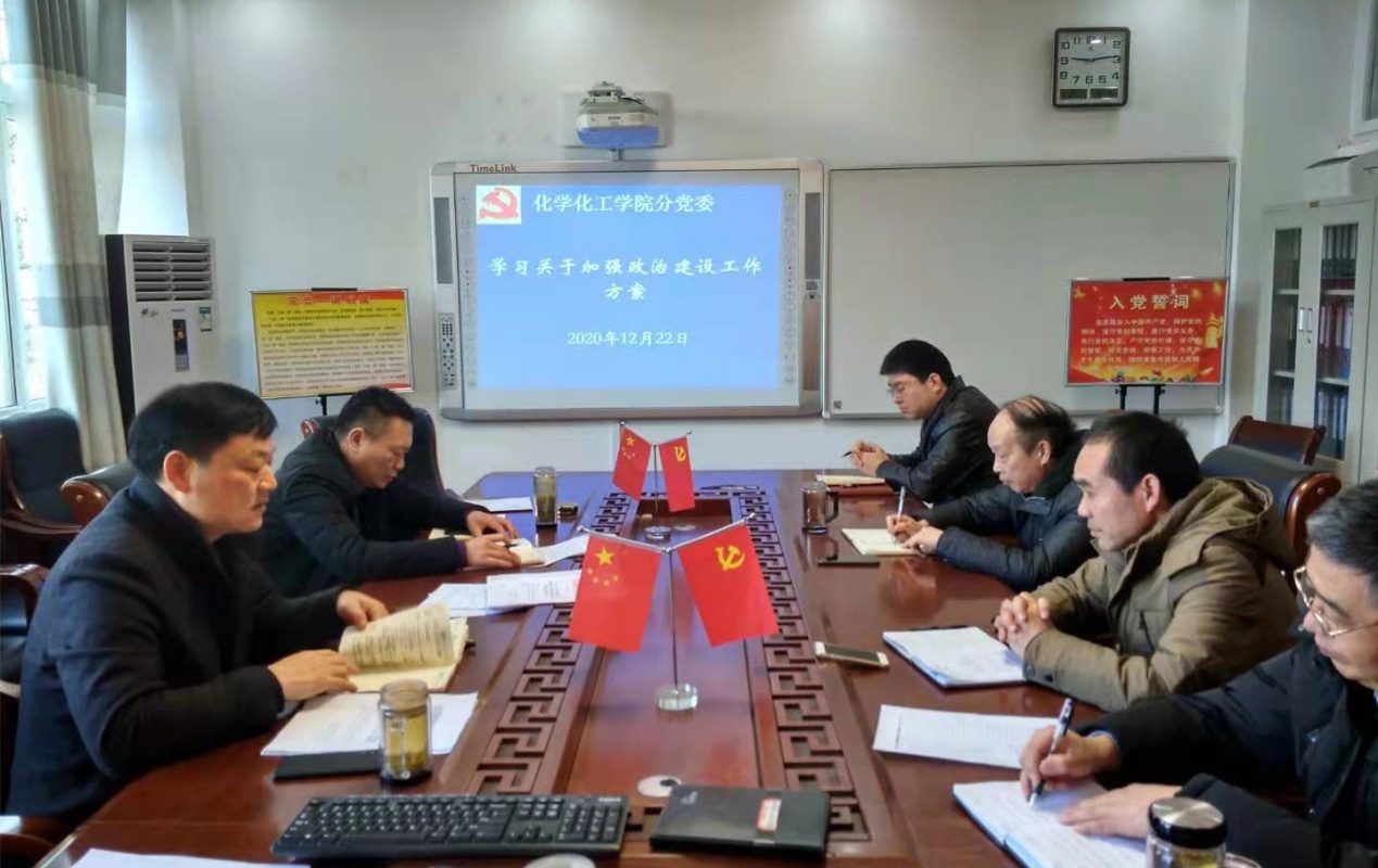 12月22日,永利集团304am官方入口党委专题学习贯彻关于加强高校党的政治建设有关文件,研究部署贯彻落实若干措施。会议由学院党委书记郭鹏主持,分党委委员井强山、归风铁、骆定法、刘鹏、吴志伟参加会议。
