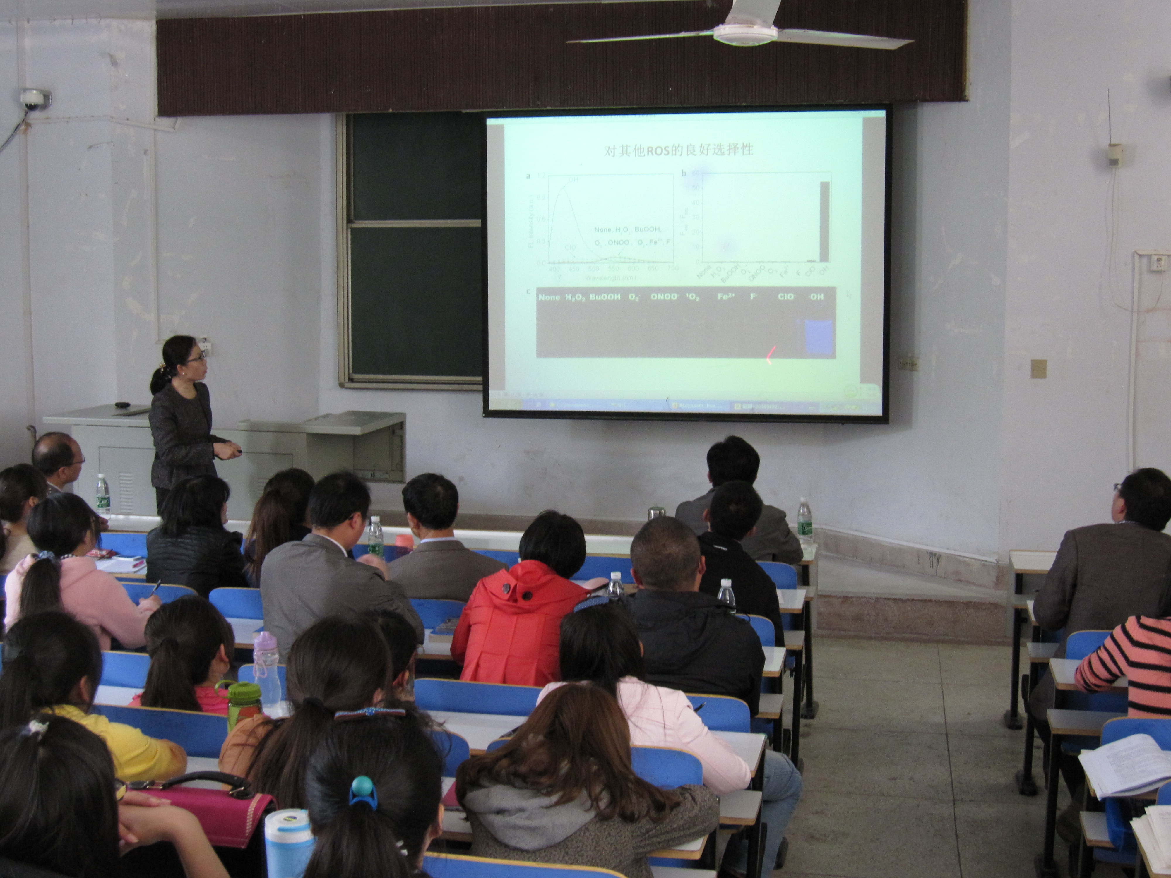 易涛教授首先介绍了响应型分子功能性材料的研究背景,从动力学驱动、热力学可逆开始,讲述了分子敏感材料及对外界刺激的响应能力,重点结合自己的科学研究,从比度荧光探针检测ROS和DNA、荧光开关材料用于活细胞成像和超分子凝胶材料用于可视化检测三个方面,讲授了响应型探针材料及生物成像,易教授精彩的报告赢得了师生的阵阵掌声。会后,易涛教授与永利集团304am官方入口师生就报告相关内容进行了深入交流。
