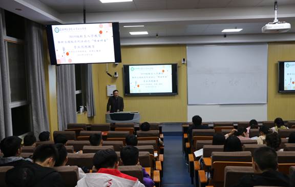 骆定法在教四T1为2020级化学专业学生作专业思想教育。他指出,同学们应注意大学学习每个阶段容易出现的问题,要求同学们树立远大目标、找准学习方法、注重班级学风建设、塑造健康人格,最终成为富于实践、敢于创新的高素质人才。